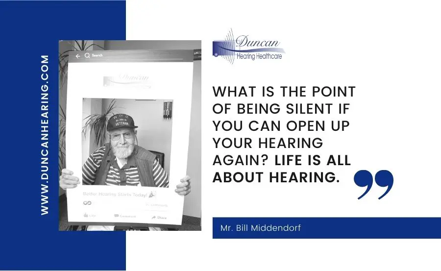 When we asked Mr. Middendorf what advice he might have for someone considering contacting Duncan about their own hearing, he responded, “Why not? What is the point of being silent if you can open up your hearing again? Life is all about hearing. Would you agree?”