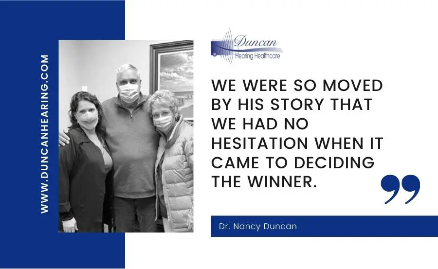 Tom’s wife said, “My life has greatly improved due to hearing aids, thanks to Dr. Duncan and the devotion of Nancy Duncan and her great staff.”