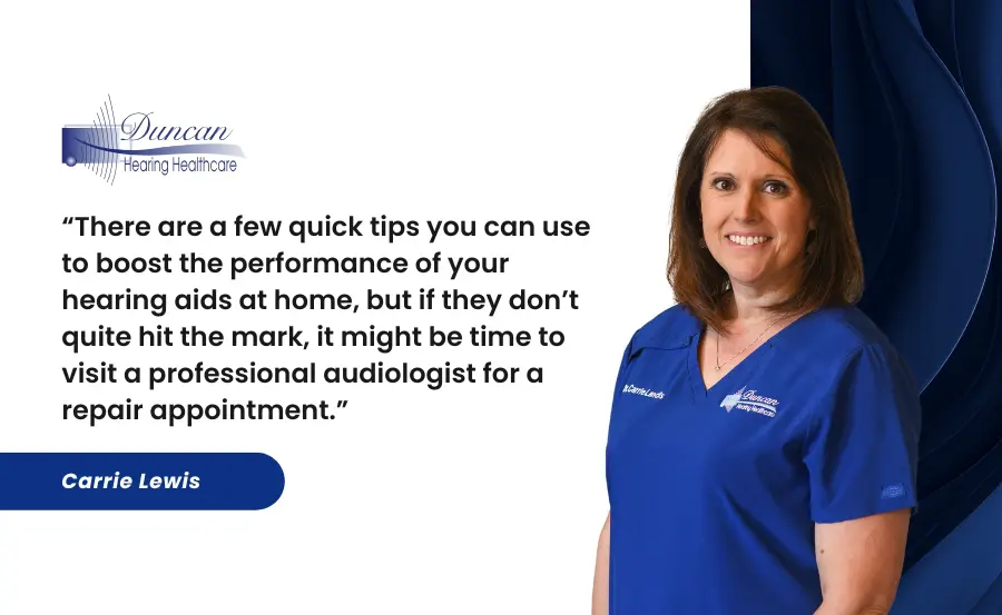 There are a few quick tips you can use to boost the performance of your hearing aids at home, but if they don’t quite hit the mark, it might be time to visit a professional audiologist for a repair appointment.