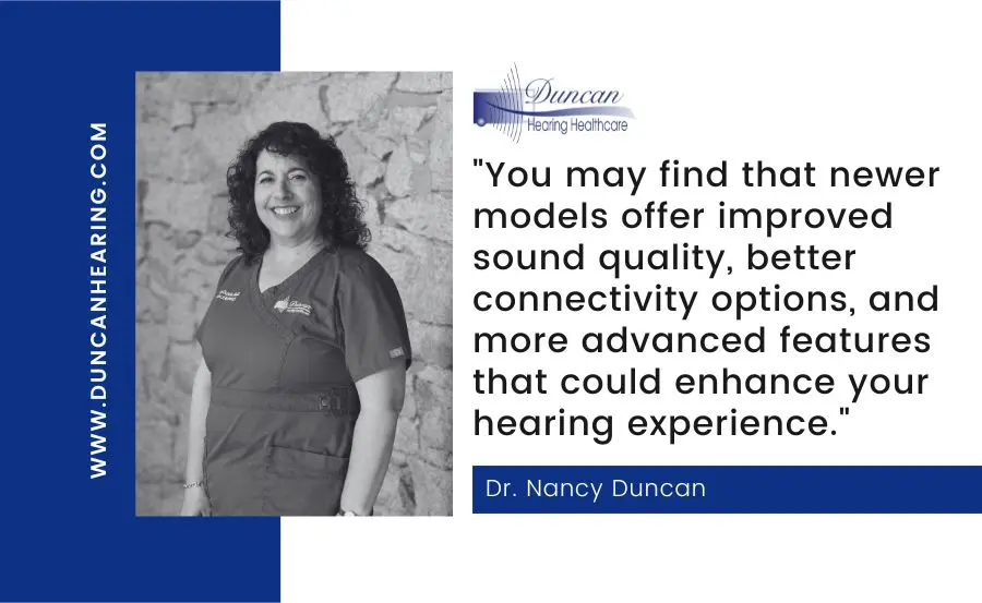 At Duncan Hearing Healthcare, we understand that choosing to upgrade your hearing aids is a personal decision. Whether you're experiencing issues with your LiNX Quattro or simply curious about the latest advancements in hearing technology, we're here to help. Our team of experienced audiologists can provide personalized recommendations based on your unique needs and lifestyle. We offer support for repairs, upgrades, and consultations to ensure you're getting the most out of your hearing aids. Don't let outdated technology hold you back from experiencing the full spectrum of sound. Contact us today to schedule an appointment and explore how the latest hearing aid innovations can improve your quality of life.