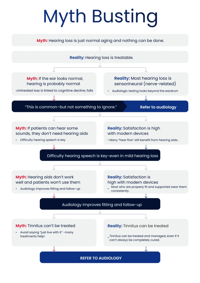 Misconceptions about hearing loss can delay diagnosis, referral, and treatment. Addressing these myths early improves patient outcomes and supports evidence-based care.